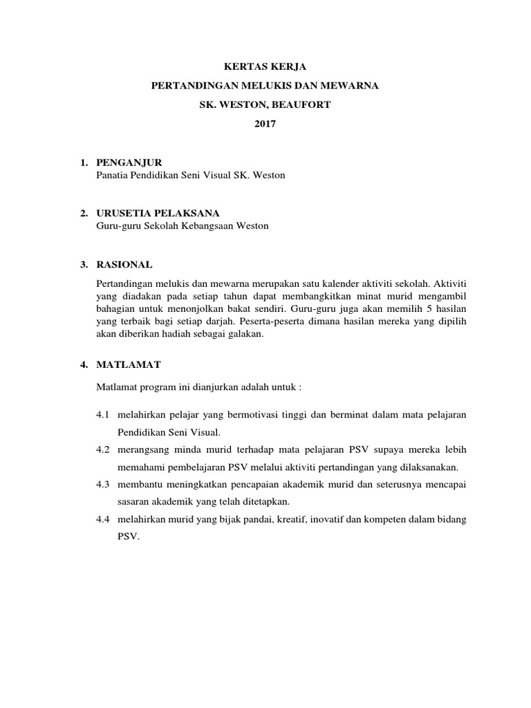 Contoh Kertas Kerja Pertandingan Melukis Dan Mewarna