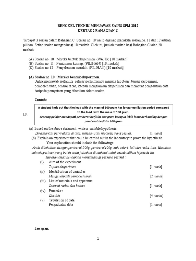 -Bhg C No. Laman utama Sains SPM Teknik Menjawab Soalan Esei Sains SPM No 10 Teknik Menjawab Soalan Esei Sains SPM No 10 Cikgu Hailmi Ahad Januari 01. 15 Contoh Instrumen Pentaksiran Bilik Darjah PBD.